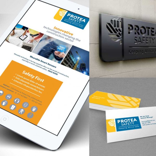 Identity design. The elements demonstrate the strength and integrity of the brand. The protea logo has been created to evoke a modern and bold attitude.