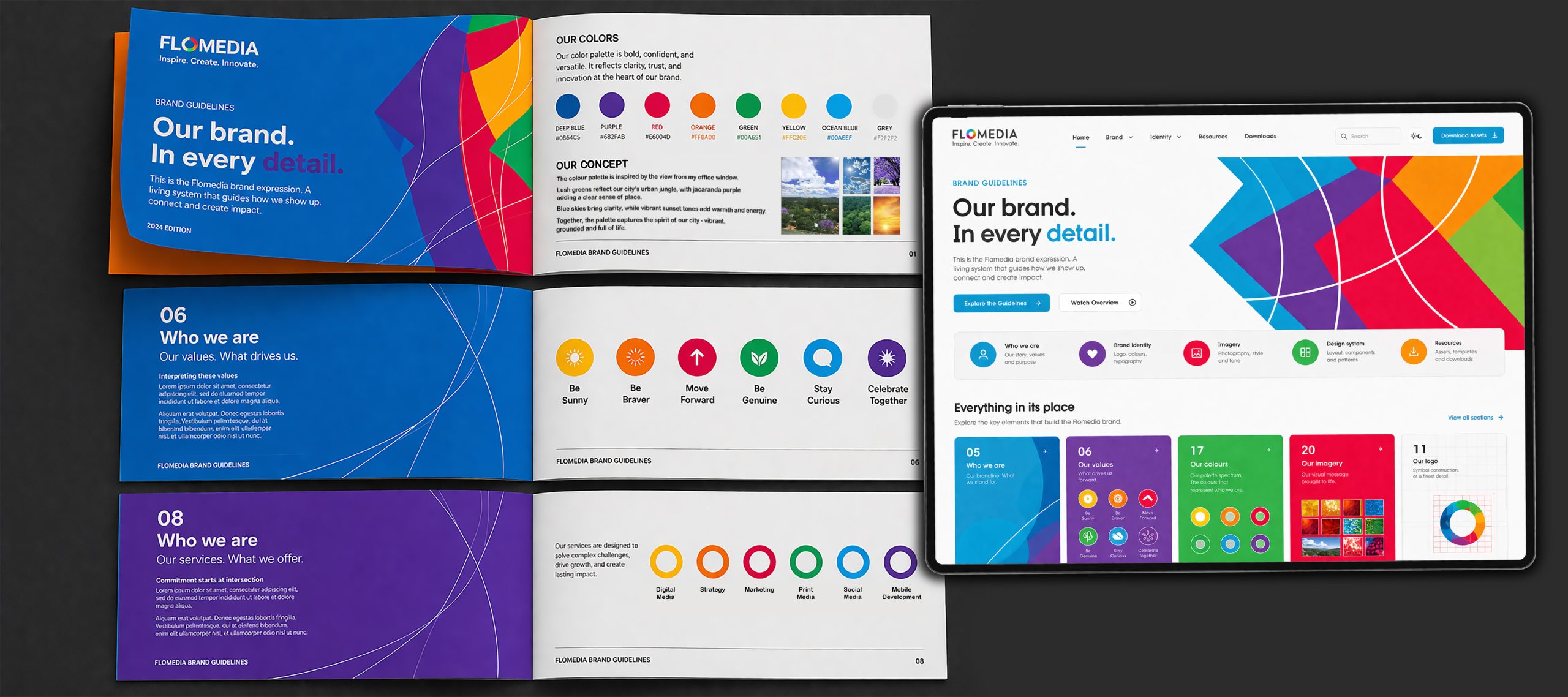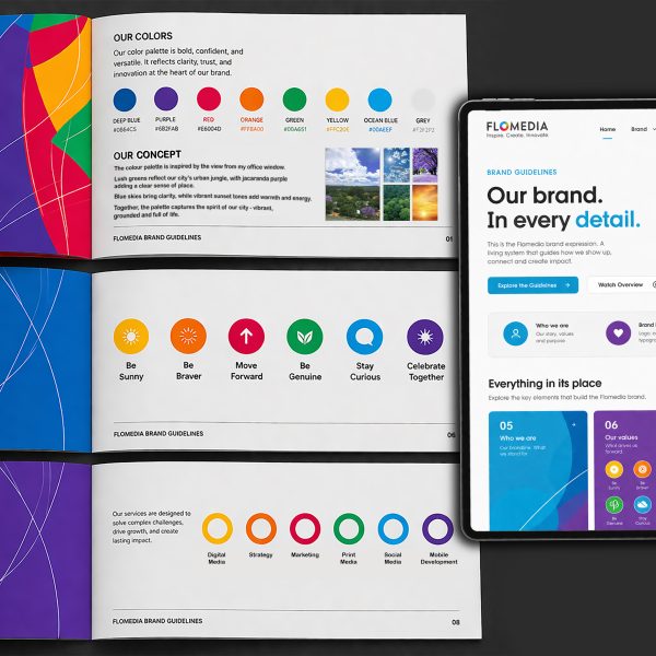 Flomedia Corporate Identity The CI is built around a simple, authentic idea – the view from the office window. The colour palette draws directly from this environment: lush urban greens, jacaranda purple, clear blue skies and warm sunset tones. Together, …